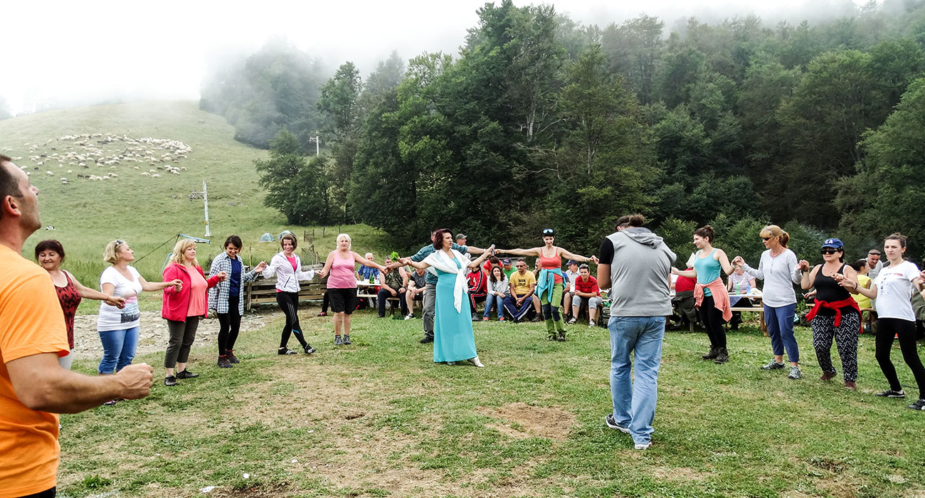 Приближавайки празникът се откри гледка: поляна, чеверме в центъра, пееща народна певица до него (Гуна Иванова за запознатите), около нея се играе хоро. Около хорото наредени маси и шатри. На заден фон овчарника. На преден фон огромни зелени баири, овце и овчарски кучета.. и облаци преминаващи от време на време (определено искахме да останем).