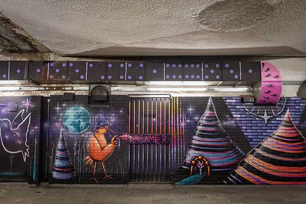 Разхождайки се из квартала ще се натъкнеш на творби, изпълващи цели калкани на световно признати артисти като Nasimo, Bozko и Glow, но и на други не по-малко талантливи като Rays, Felon, Zombit, Hype All Night, City Thru Calligraphy, Bilos, Zefyn и други.