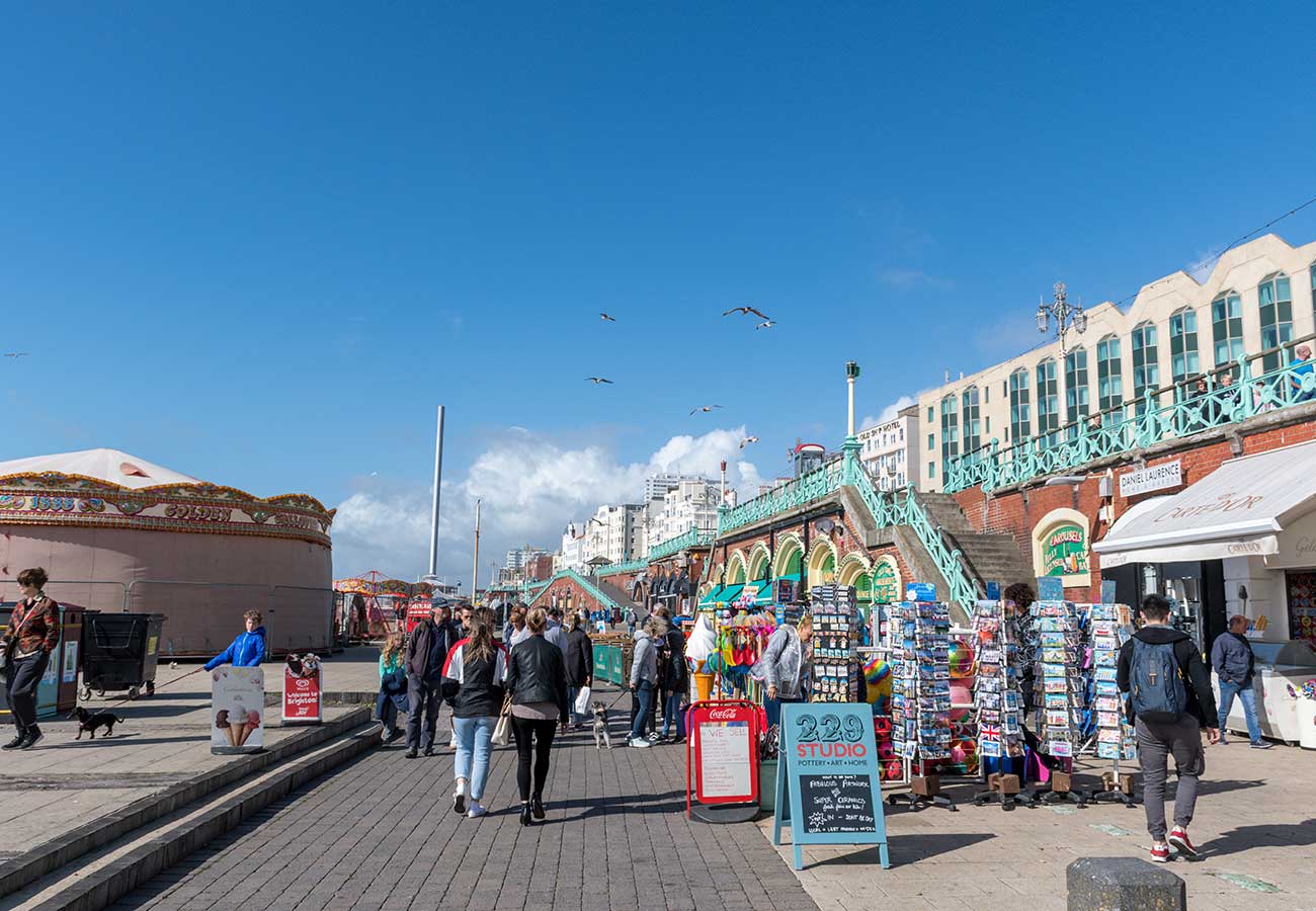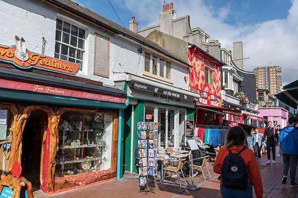 - The Lanes - основната причина за сравнението на Брайтън с Капана - в миналото рибарски квартал с много тесни улички, които в днешно време са изпълнени с множество кафенета, малки симпатични ресторанти, магазинчета и работилници. Голяма част от сградите са изписани с невероятни графити, добавящи бонус точки към магията на тази зона от градчето. Поне няколко пъти ще се почувстваш объркан относно местоположението си, обикаляйки квартала, но точно това му е чара - загуби се нарочно!