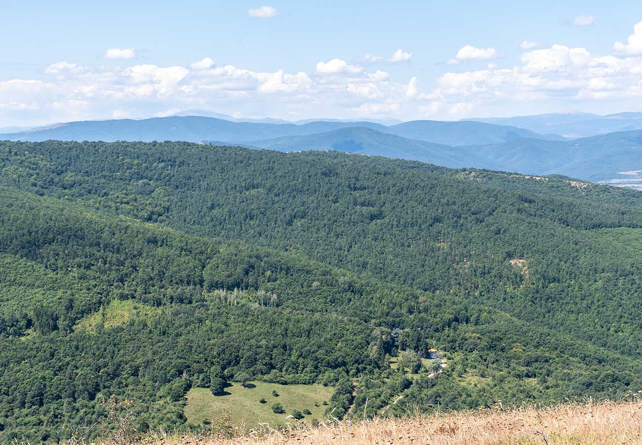 Не забравяй да спираш и да се обръщаш назад - панорамните гледки в тази част на прехода са предимно зад теб. А те включват в далечината и язовир Пчелина.