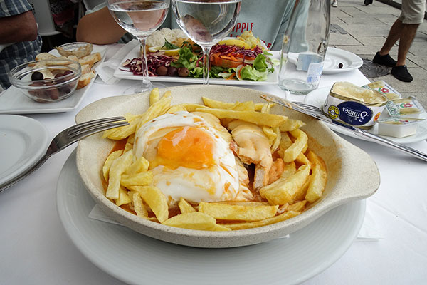 Традиционно ястие характерно за северните райони на Португалия е така наречената "францесина" (francesinha). Странна комбинация от слоеве хляб, пържола, бекон, наденица, запечатана със слой разтопен кашкавал (това не е всичко) и рохко яйце. Поставено в странен жълт (бирен) сос с плуващи в него пържени картофи (: