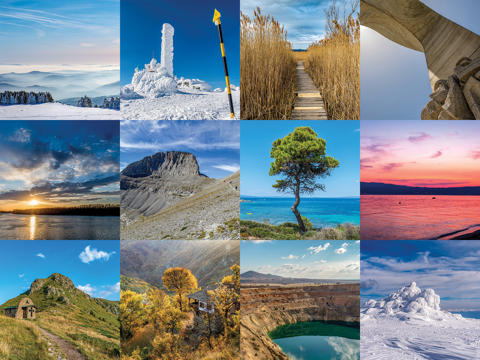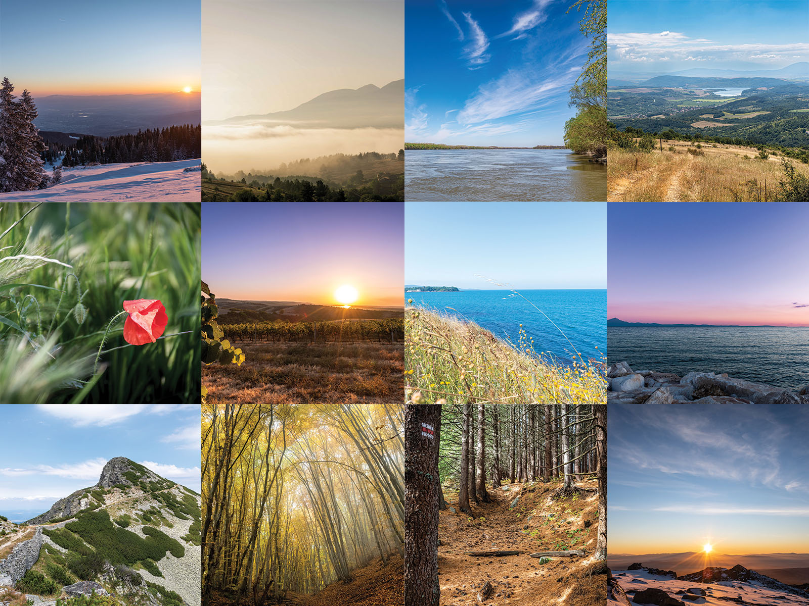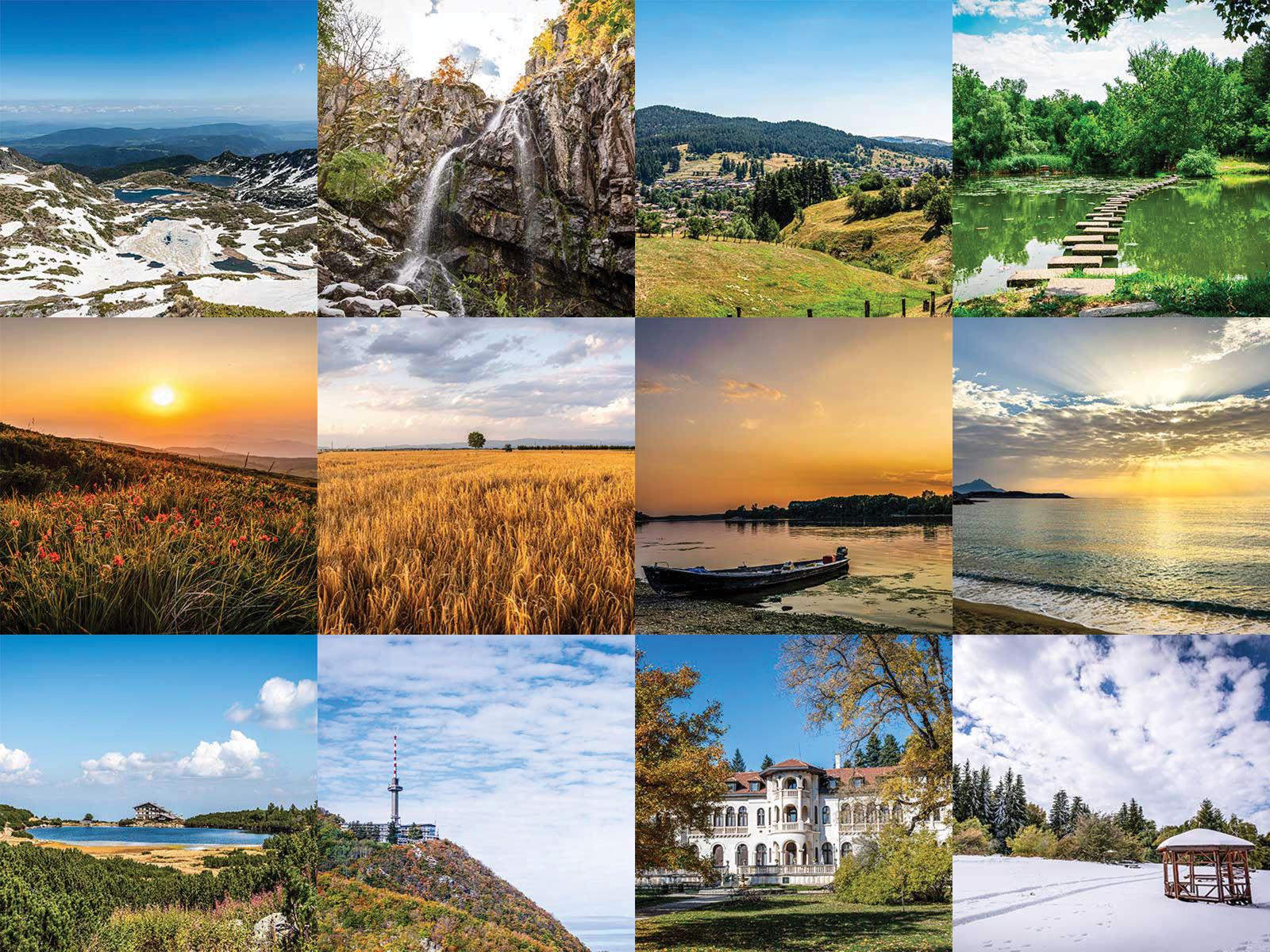 Размерите му са 15 на 15 сантиметра - настолен - тип "пирамидка" със спирала. Състои се от корица и 12 листа с мои фотографии от прекрасни дестинации.